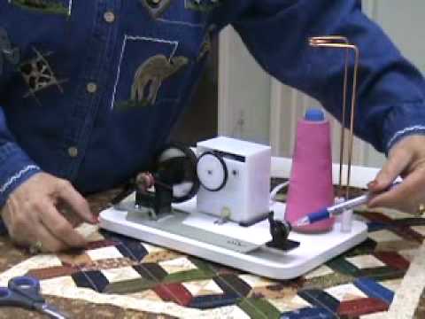 This is an electric bobbin winder which can be initially adjusted to fit your size of bobbin, either L or M. The base is a compact size of only 8 inches by 12 inches with a built in thread stand which will accommodate large cones or small spools. The base of this bobbin winder is melamine with a full edging. It also has rubber feet on the bottom. There is also an adjustment screw that determines the amount of thread that is wound before the winder dis-engages. This allows the bobbin winder to wind bobbins with different outside diameters as well. The home quilter and embroiderer will appreciate the convenience of this item. This is the same type bobbin winder that is found mounted on industrial machines. Shipping is a flat $19.50 for Continental US. I’m sorry if shipping sounds high, but it actually costs this much to ship this item. Frequently…….it even costs more.